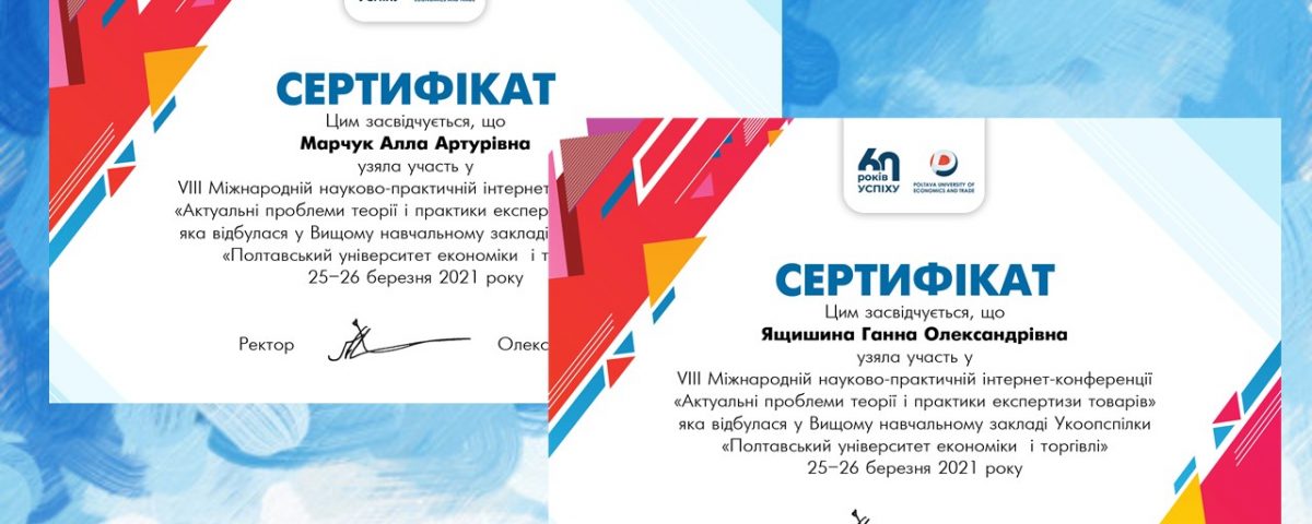 25-26 березня відбулася VIII Міжнародна науково-практична інтернет-конференція «Актуальні проблеми теорії і практики експертизи товарів» у полтавському ВНЗУ «ПУЕТ». Ініціатором та організатором проведення конференції виступили кафедра експертизи та митної справи ПУЕТ.